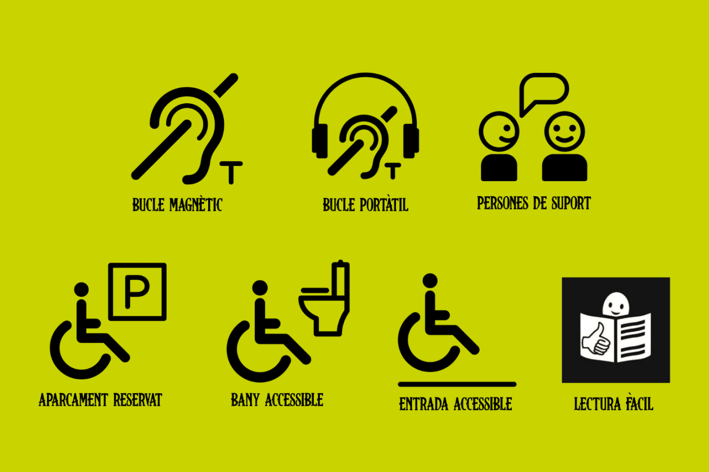 - Els diversos espais del Festival comptaran amb una senyalització especial com pictogrames o materials en lectura fàcil per facilitar la comprensió i la pròpia autonomia.